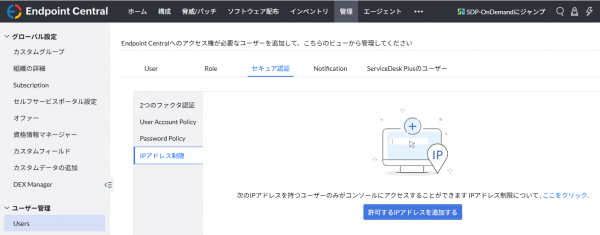 この記事では、Endpoint Central Cloud コンソール画面に対してアクセス可能なIPアドレスを制限する方法について説明しています。