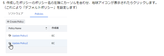 - ポリシー名の左側をクリックし、デフォルトポリシーを指定します。