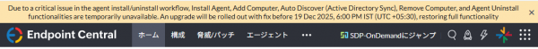 2025年12月19日 10:00現在(日本時間)、エージェントのインストール・アンインストール、コンピューターの追加、Active Directory同期、コンピューターの削除に関する機能に障害が発生しています。