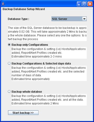 ?・Backup only configurations -- EventLog Analyzer での設定情報のみをバックアップします。