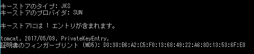 ◆ キーストアファイルに証明書がインポートされていないことの確認方法