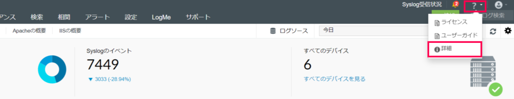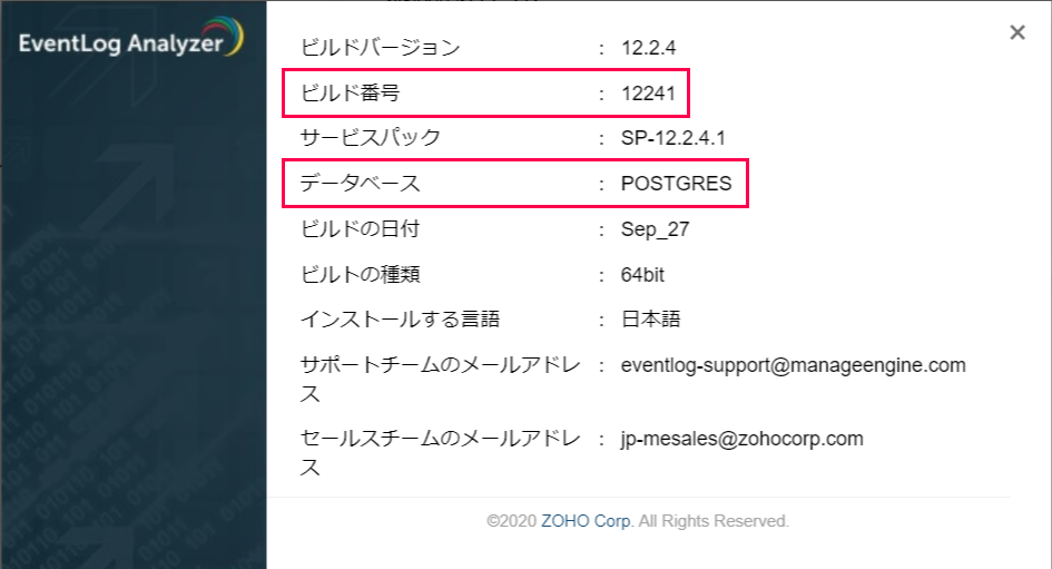 本ナレッジでは、現在利用しているEventLog Analyzerの「ビルド番号」と「使用データベース」の確認手順を説明します。