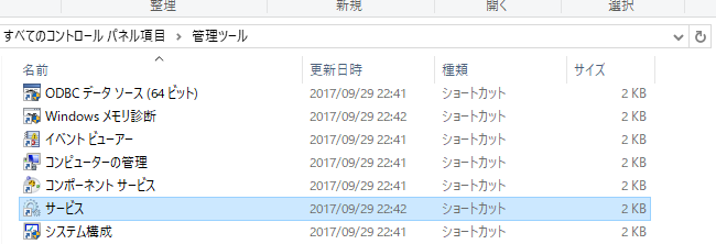 - [コントロールパネル] → [システムとセキュリティ] → [管理ツール] → [サービス]を起動します。