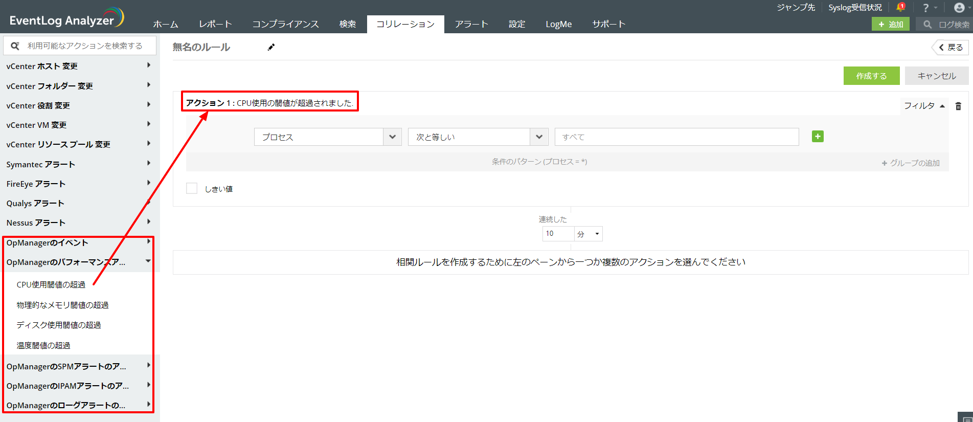 6. 以下のように、OPMイベントに対するコリレーションルールセットがページ下部に表示されるので、用途に合わせたコリレーションルールを作成してください。