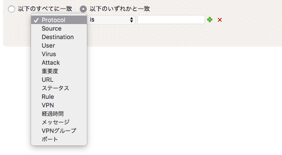 ※トラフィックログにチェックが入っている場合は、通信の許可ログも検索対象となります。
