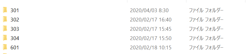 その際、フォルダー名は、301、901、1801のような名前で生成されます。