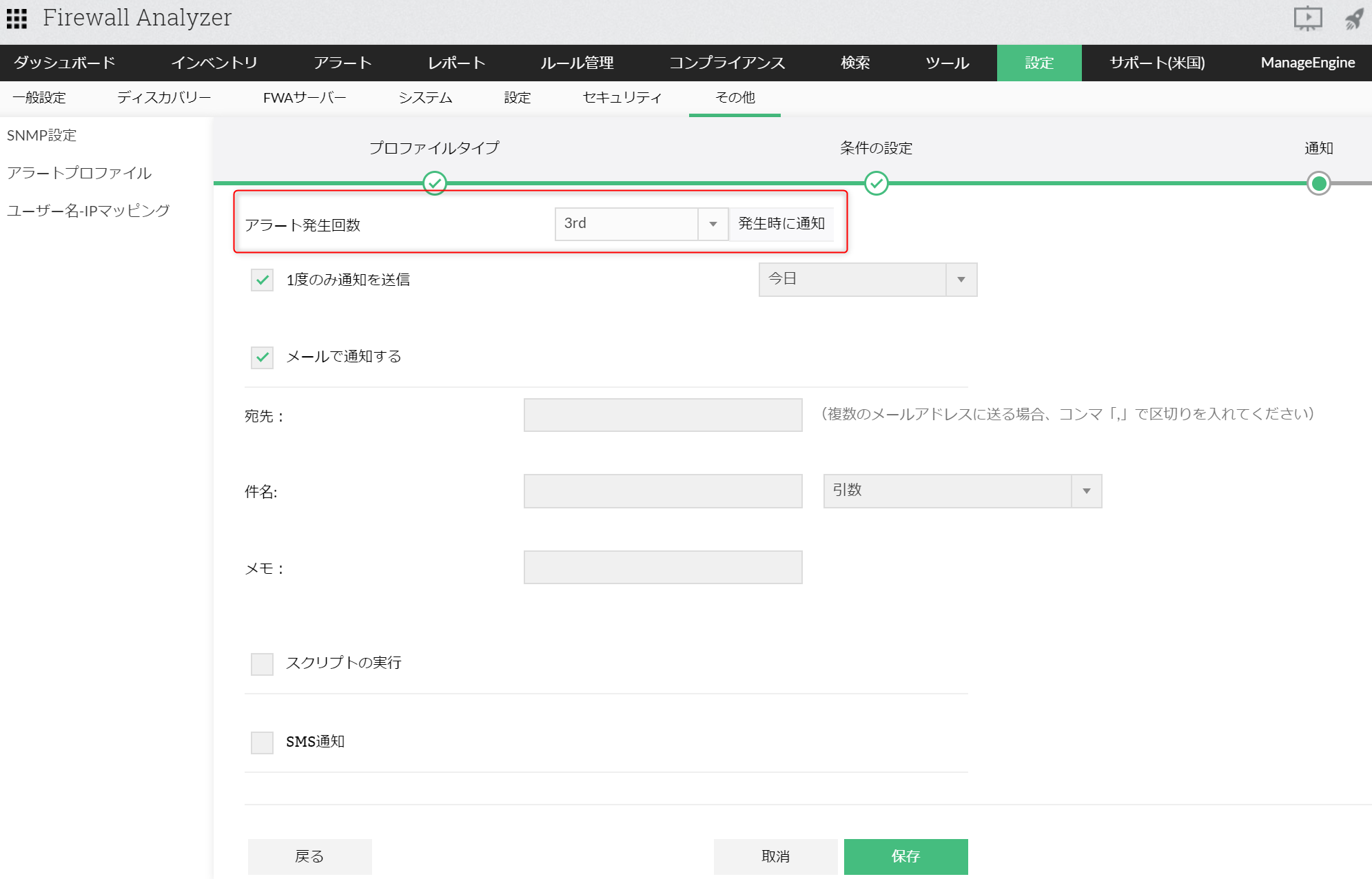 - 最後に通知タイミング(アラート回数)と通知設定を行ない、保存