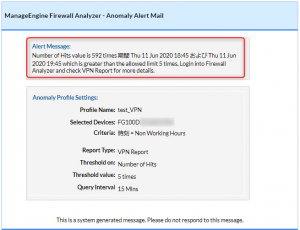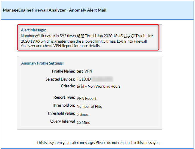 - 異常レポートタイプ[VPNレポート]、[日時_次の値に等しい_業務時間外]を選択