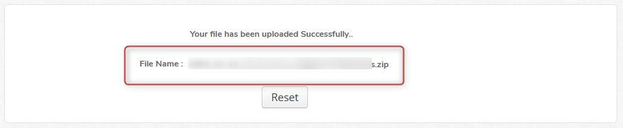 - [File Name :]に表示されたファイル名をコピーし、アップロード完了の連絡とともにサポート担当者にご連絡ください。
