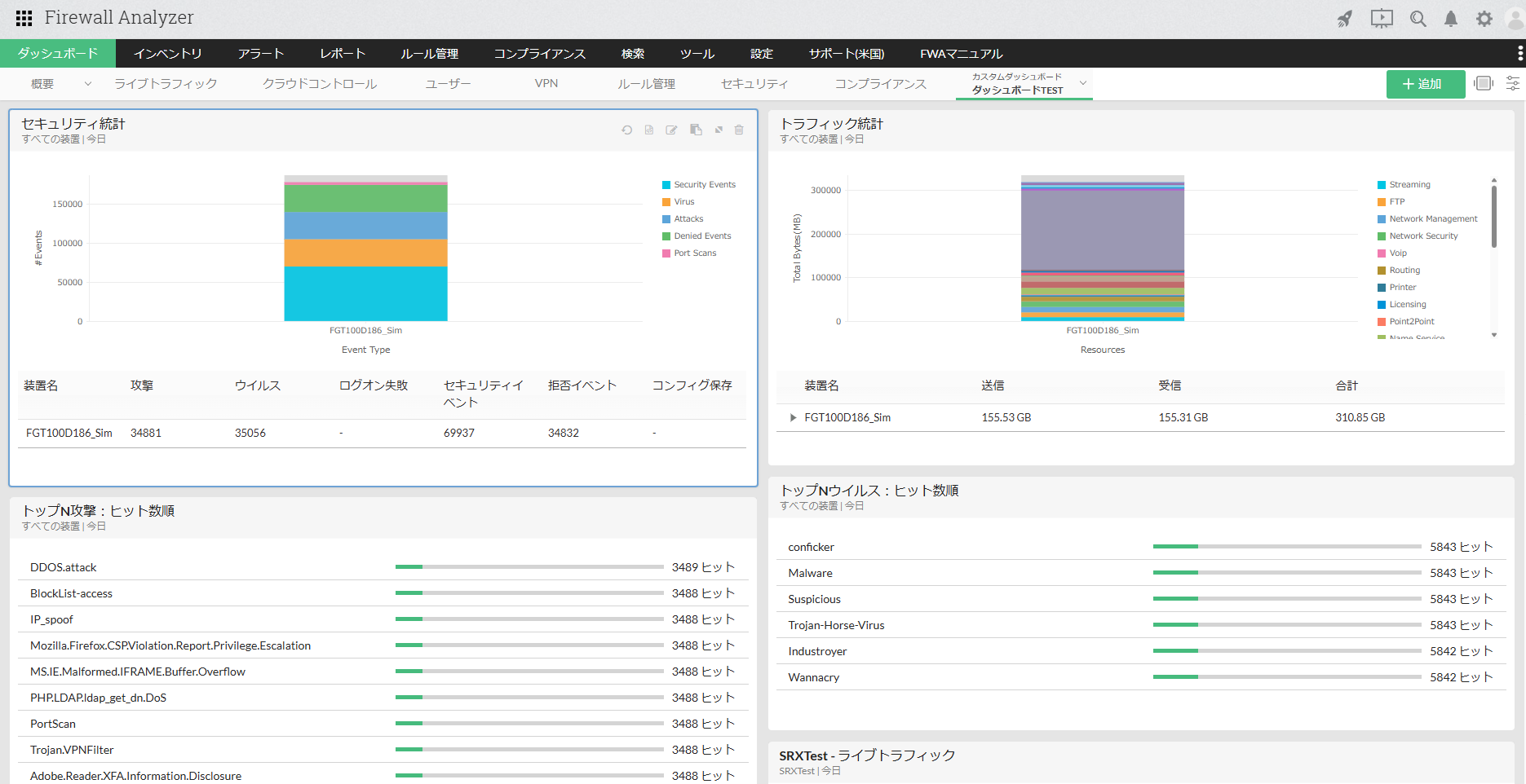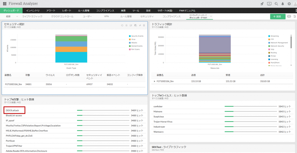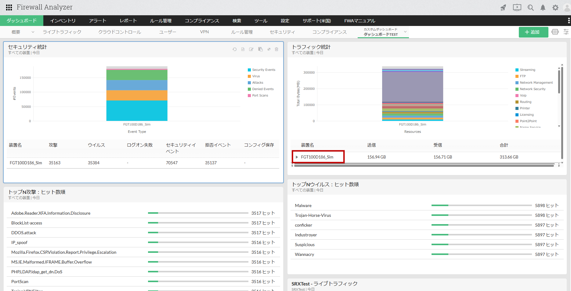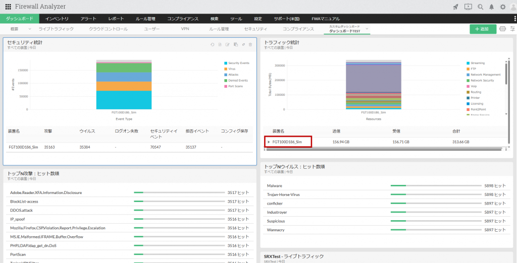 本ナレッジでは、Firewall Analyzer(以下、FWA)のトップメニューであるダッシュボード機能の活用例について記載します。