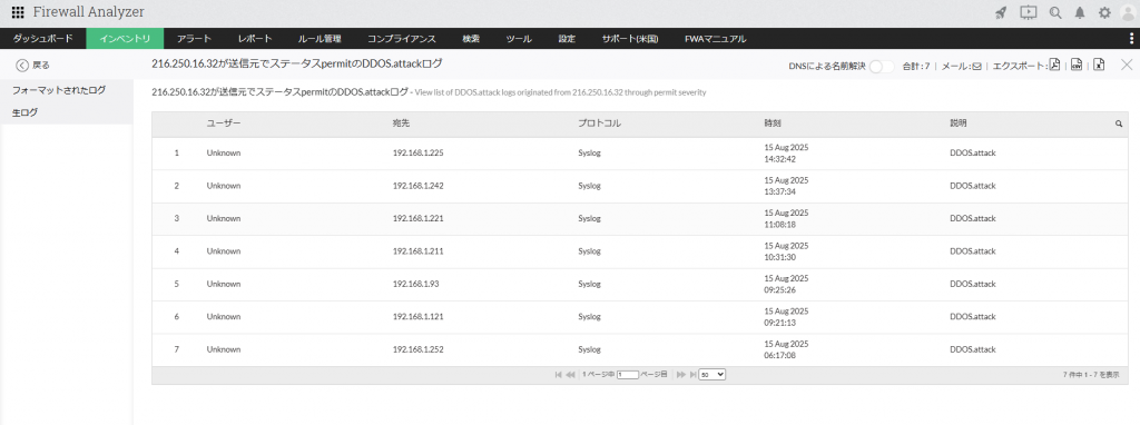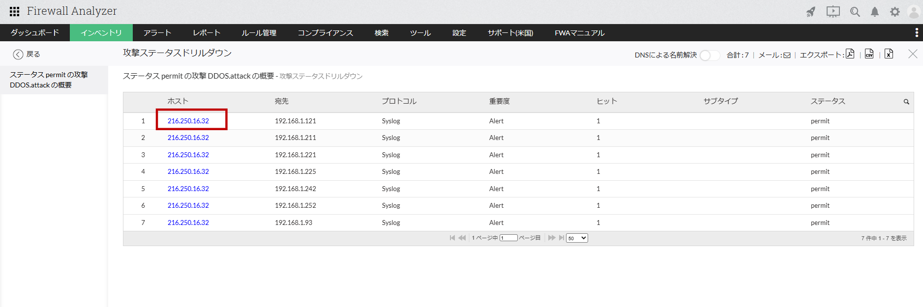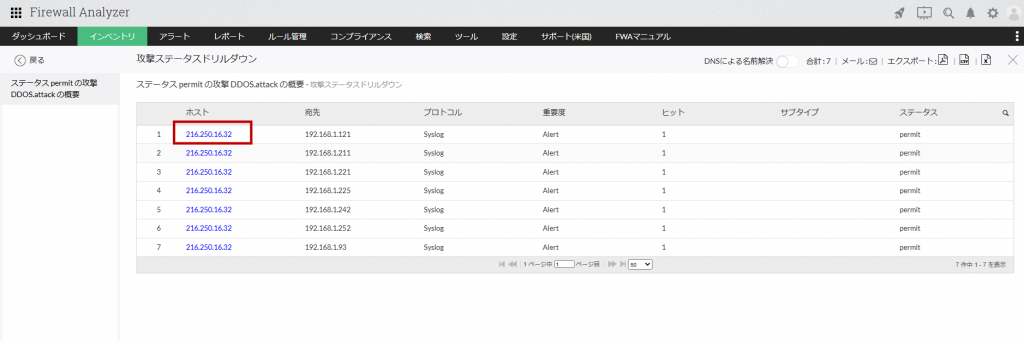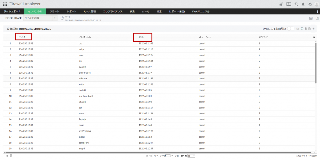 - 攻撃元(攻撃者)と攻撃先(ターゲット)の情報を確認