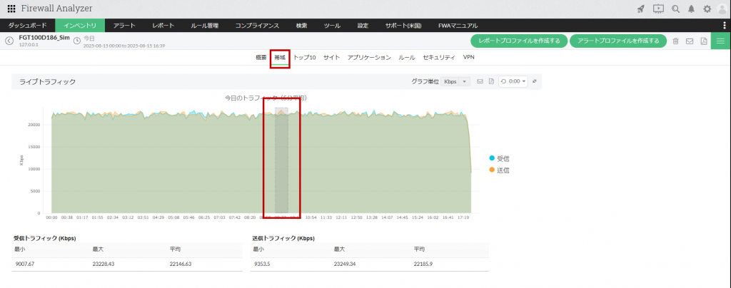 アラートプロファイル機能の「帯域アラート」を設定することで、