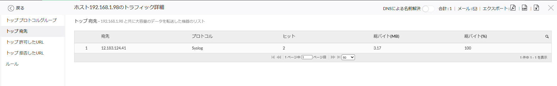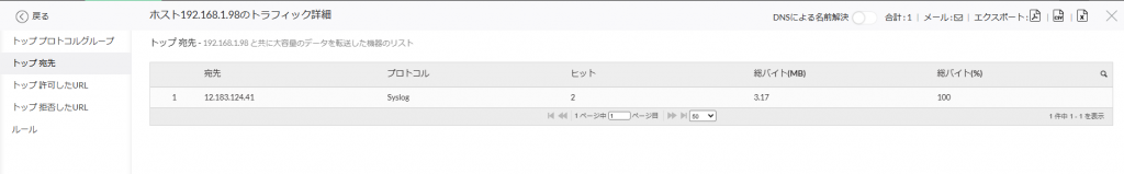 - ウィジェット[トラフィック統計]で対象装置をクリック