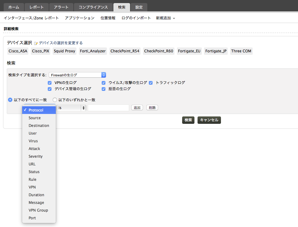 | Device | ログを生成した装置を参照します。 |