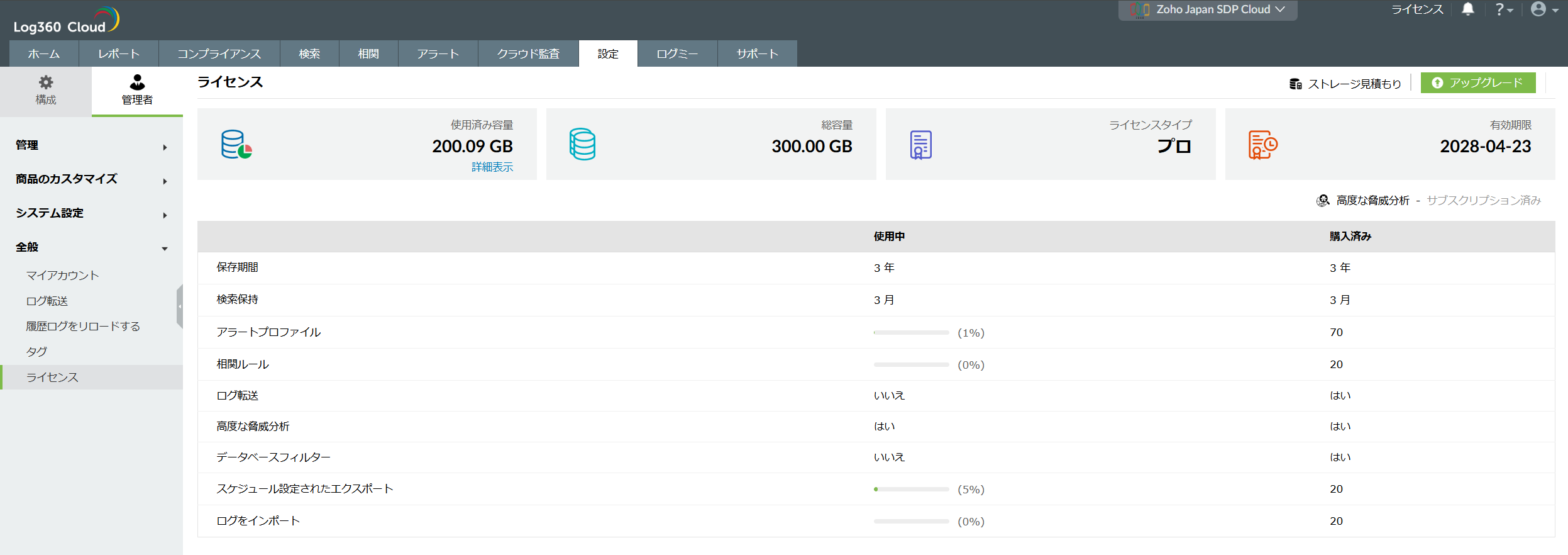 ※日本法人でご契約されたお客様は「プロ」(Professional Plan)と表示されます。 - 有効期限:契約満了日