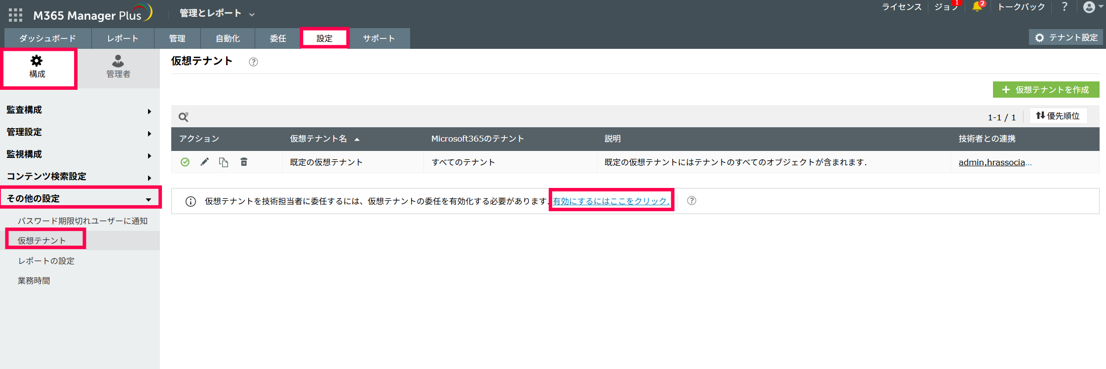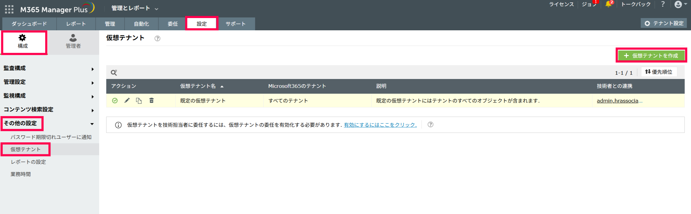 そのような場合に有効な「仮想テナント」を委任機能にて有効化する方法をご紹介します。