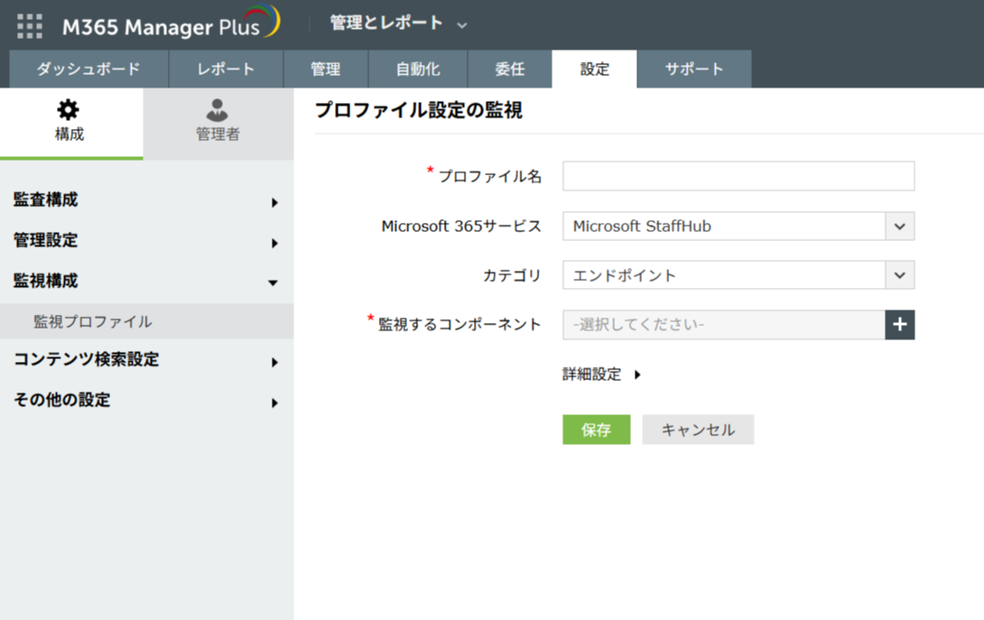 M365 Manager Plusではデフォルトで多数の監査・アラート・監視プロファイルを用意していますが、デフォルト以外にもプロファイルに追加可能なサービス・アクションがあります。