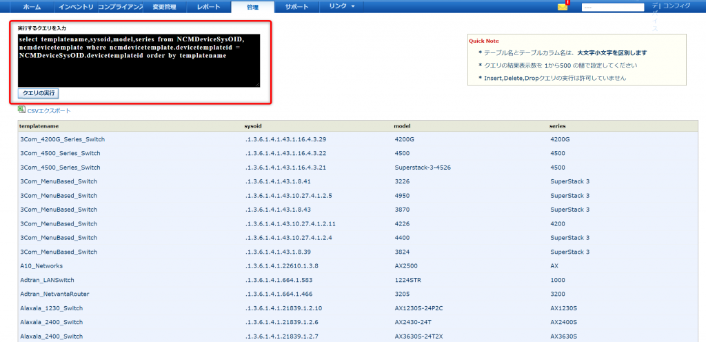 本ナレッジでは、モデル、シリーズ情報含め、装置テンプレートとsysObjectIDの紐づけリストを表示する方法を記載します。