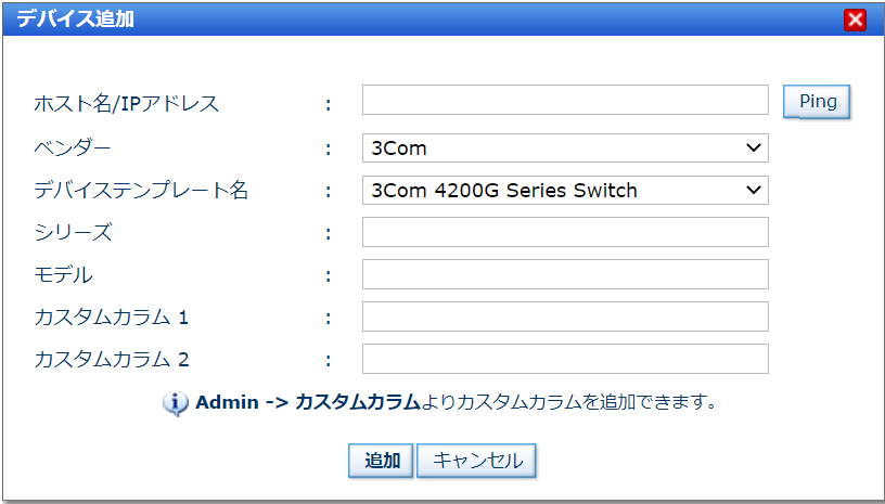 - [デバイス追加]画面で、以下の情報を入力し、新規に装置追加