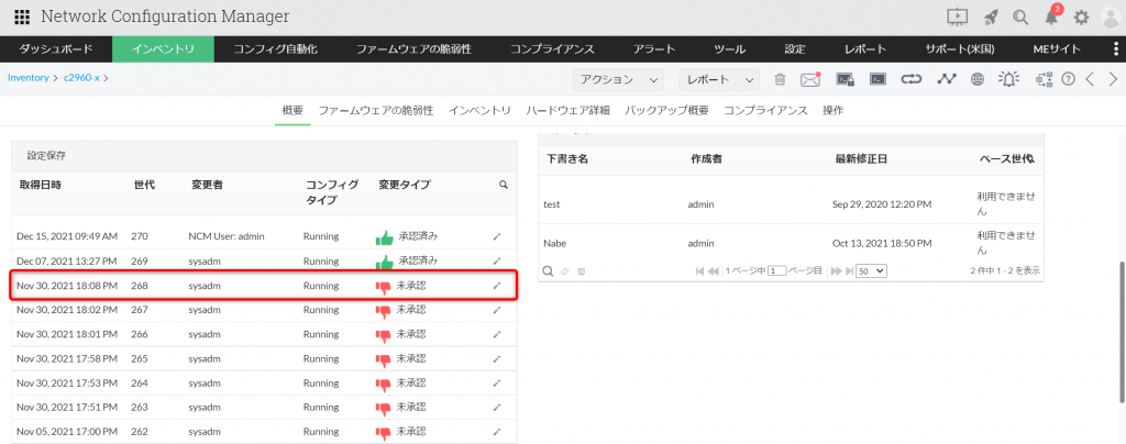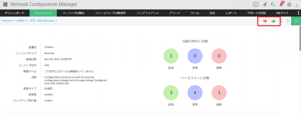 本ナレッジでは、コンフィグ取得時の変更タイプ、[承認済み]、[未認証]のステータスを変更する手順についてご案内します。
