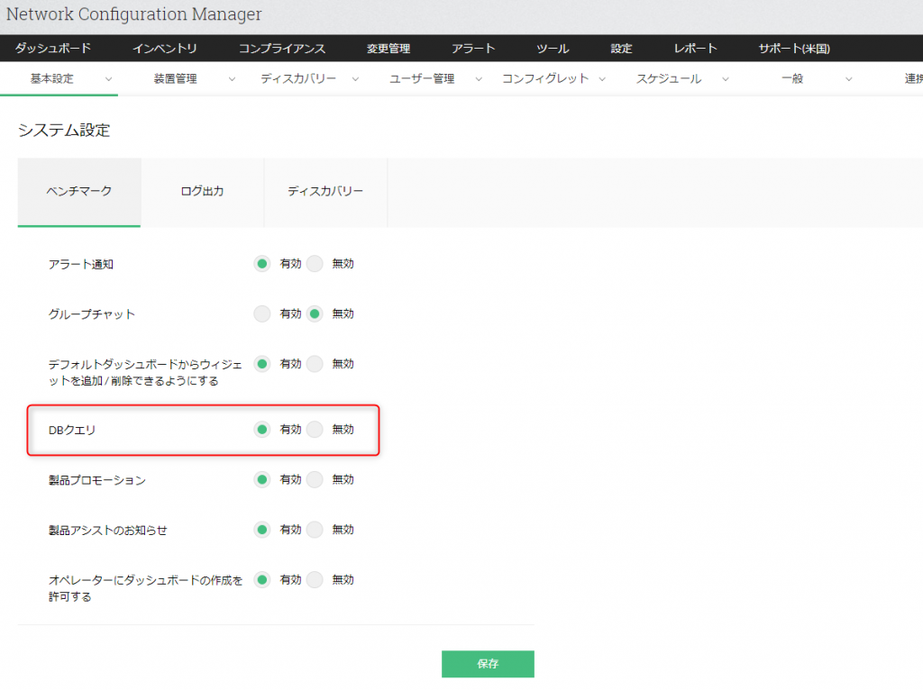 - [設定]→[基本設定]→[システム設定]→[ベンチマーク]に移動