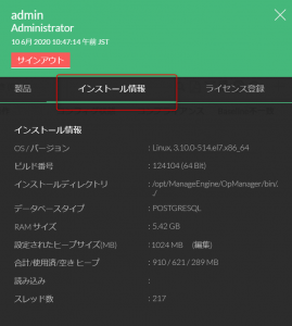 画面上部のシルエットアイコン→[インストール情報]タブより参照