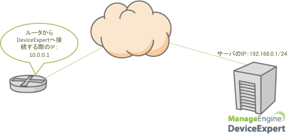 管理対象装置が、VPNやWAN環境等の外部ネットワークに存在しており、NATを使用している環境の場合、