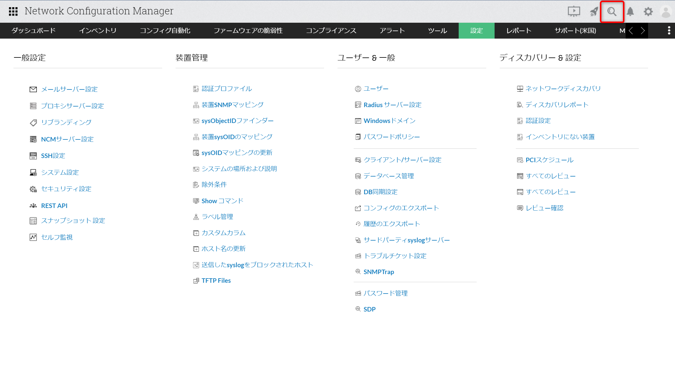本ナレッジでは、Network Configuration Managerに追加された装置のコンフィグに含まれる単語や文字列の検索方法について記載します。