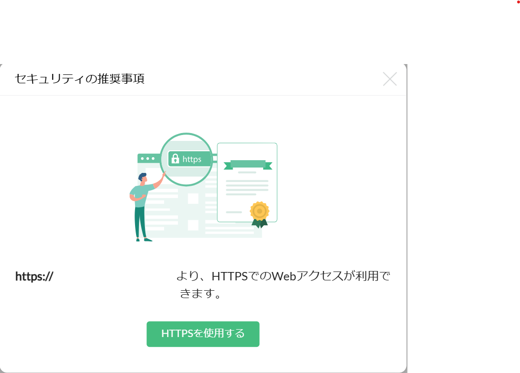 - ポップアップ上の[HTTPSを使用する]をクリックすると、自動的にHTTPS接続に切り替わります。