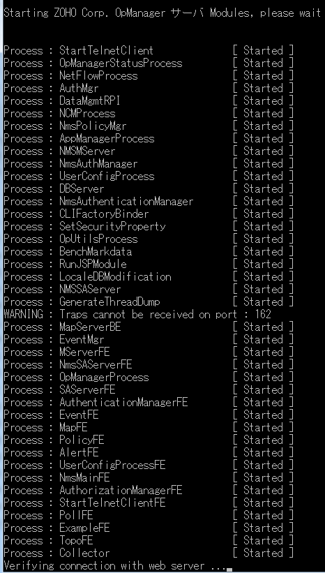 下記はOpManagerbinStartOpManagerServer.batを実行した時のイメージ。
