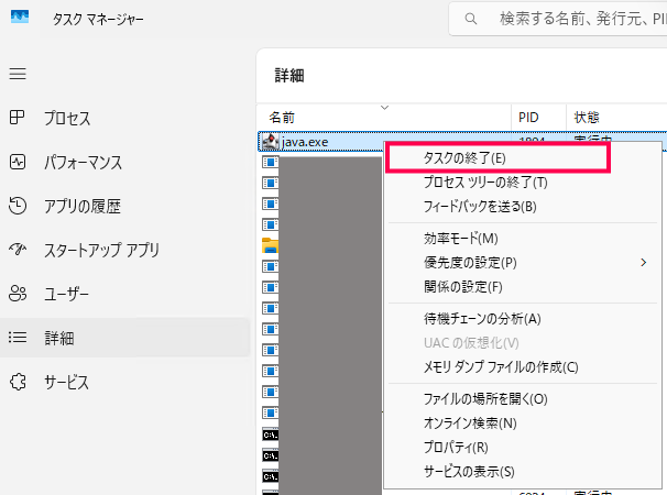 | java.exe | アプリケーション、Webサーバーに関連するプロセス |