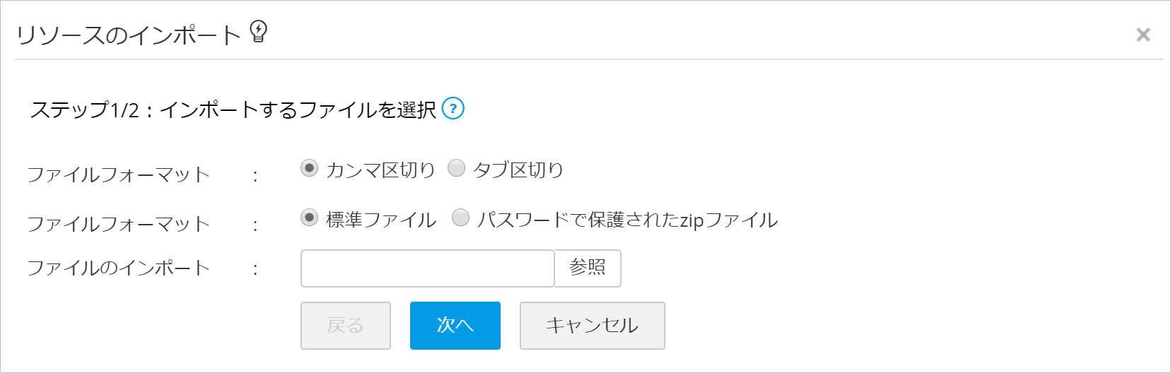 リソース・アカウントのインポート(CSV/TXTファイル)