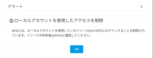 しかし、ビルド8504よりリソース編集画面にて「ローカルアカウント使用によるRDP接続を制御」の項目が追加され、申請者が使用できるアカウントをドメインアカウントのみに絞ることが出来るようになりました。