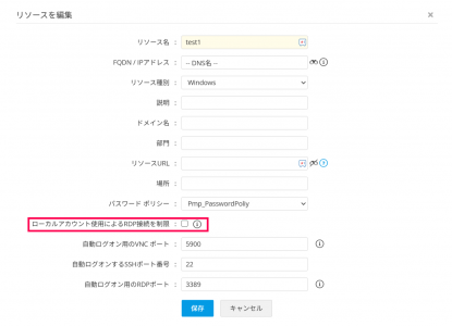 1. リソース編集画面でのローカルアカウントの制御設定