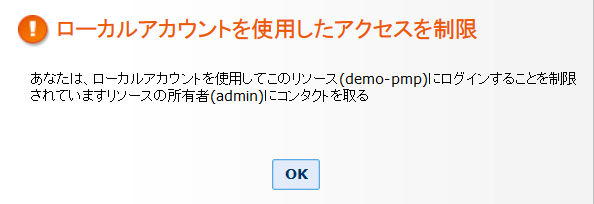 ローカルアカウントの使用を試みた場合には、以下の画面が表示されます。
