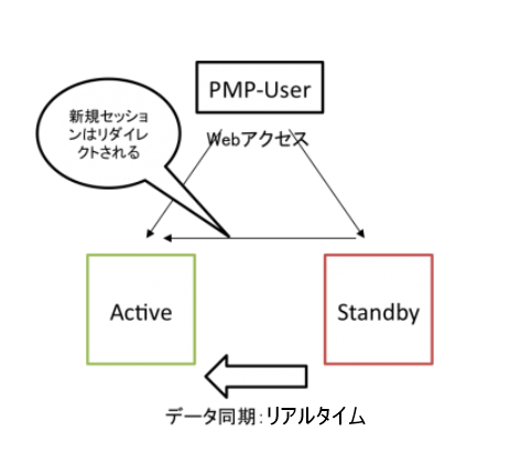 (2)プライマリサーバーが復旧して以降は、セカンダリサーバーへの新しい接続は、プライマリサーバーにリダイレクトされます。 セカンダリーサーバーへ接続中のセッションは自動ではリダイレクトされないため、一度ログアウト後再度PMPサーバーへ接続してください。