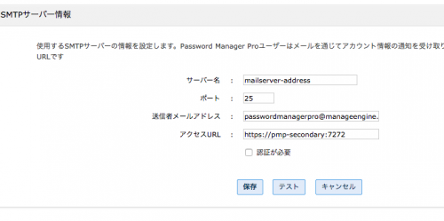 また、メールサーバー設定においてアクセスURLを指定する箇所は、セカンダリのURLを記載すると、プライマリアクティブ時、ダウン時ともにアクティブなPMPサーバーへ接続することが可能です。