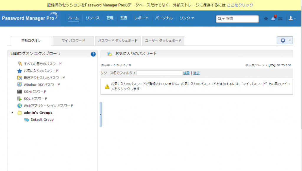 Password Manager Proのビルド8603以降の画面にて、セッションの保存先の設定を促す黄色い帯が消えない。
