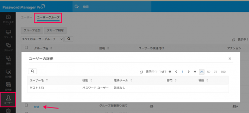 ユーザーグループのメンバーを確認する場合は、任意のユーザーグループのグループ名をクリックすることでメンバーの一覧を表示可能です。
