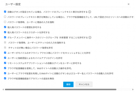 ユーザーグループでは、通常のパスワードのエクスポート設定に加えて下記の項目について設定可能です。