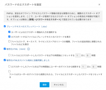 から[パスワードのエクスポートを設定]にて設定します。本機能の詳細は、ナレッジ「パスワードのエクスポート設定」をご参照ください。