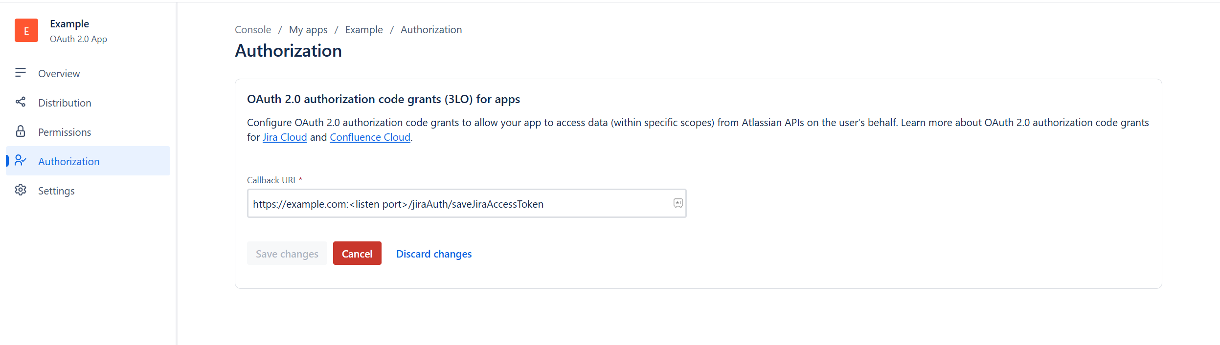 - コールバックURLを入力したら[Save changes]をクリックします。完了するとJira Service Management APIのauthorization URLが生成されます。