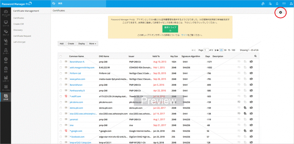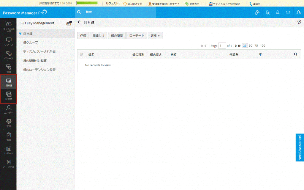 Password Manager Proはビルド9401で、ManageEngine Key Manager Plusとの連携機能が追加されました。そのため、デフォルトでSSL証明書やSSH鍵の管理機能に関係する画面が表示されます。