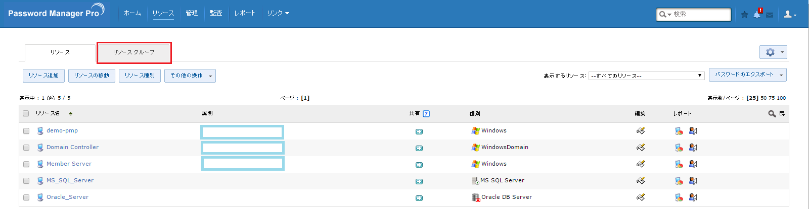 [検索]ボタンから設定した条件に合致するリソースやユーザーアカウントが表示されます。