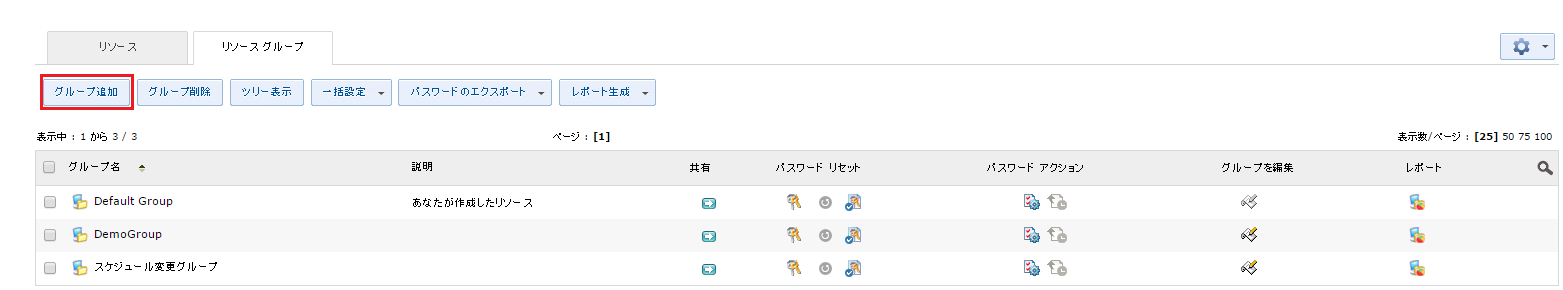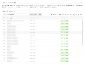 グループ名を任意で入力後、グループに追加するリソースを選択します。
