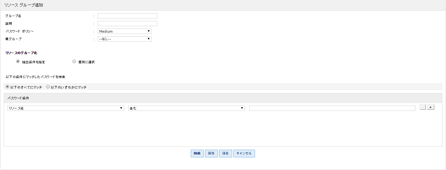 条件を設定してリソースグループを作成する場合は、[条件グループ追加]から追加します。