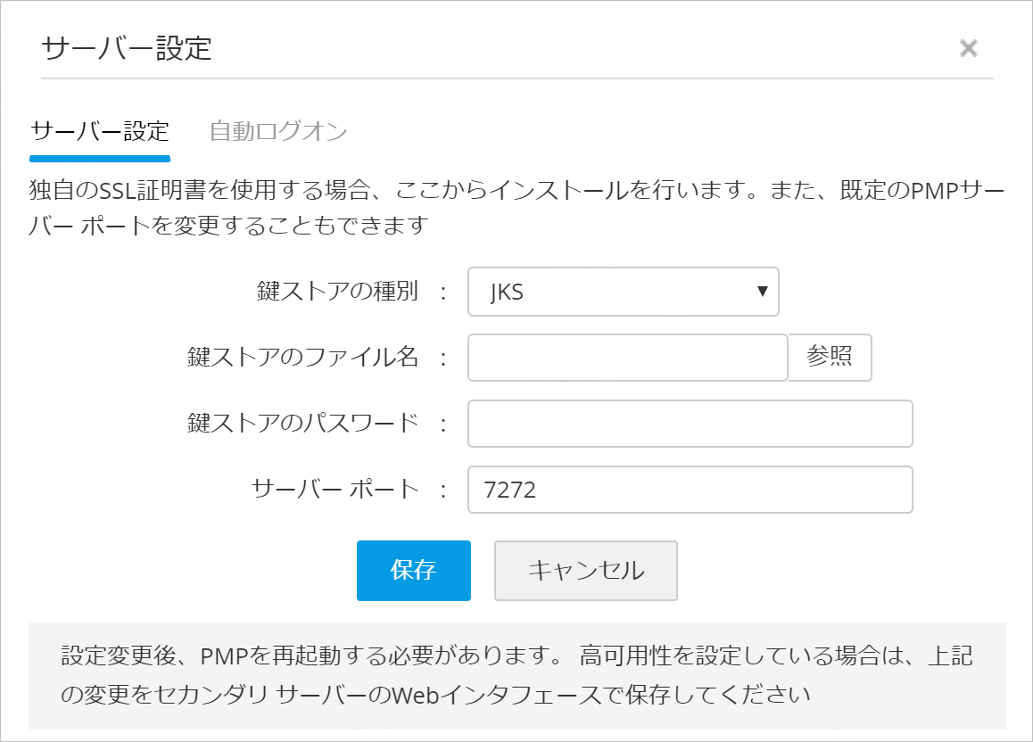 Password Manager ProのWeb画面へ接続するために、デフォルトではポート番号 7272を使用しますが、ポート番号を任意の数字に変更できます。