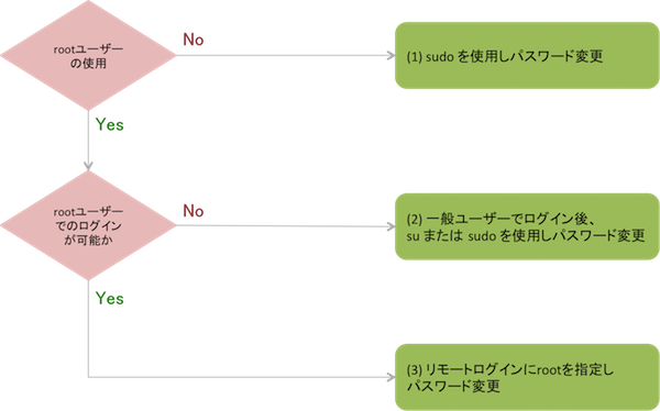 (2) 一般ユーザーでログイン後、su または sudo を使用しパスワード変更