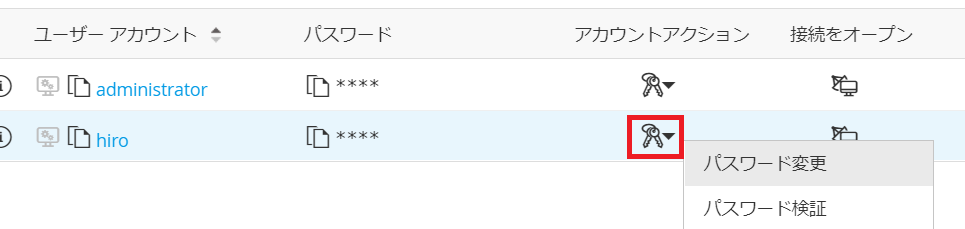 - Windowsドメインコントローラ上のパスワードを変更したいアカウントにおいて、パスワード変更 を選択