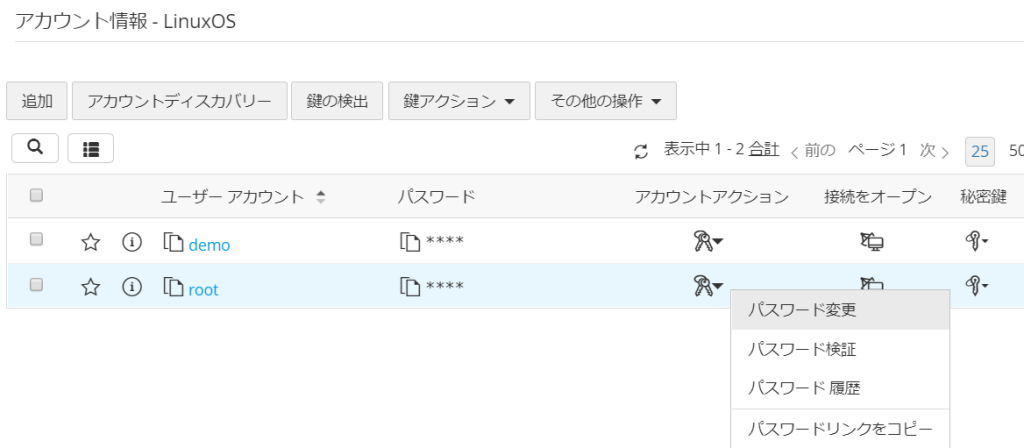 PMP上で、”接続をオープン” からrootユーザーでLinux OSにログインできることを確認